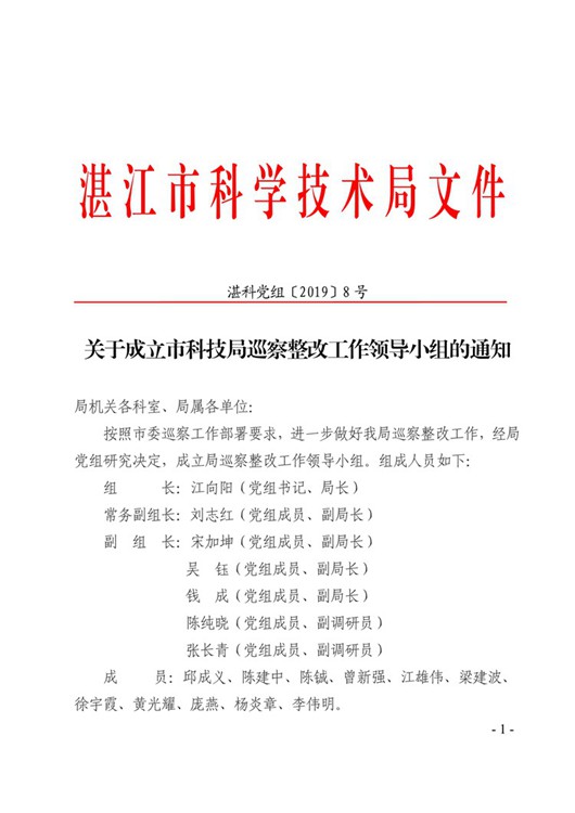 關(guān)于成立市科技局巡察整改工作領(lǐng)導(dǎo)小組的通知