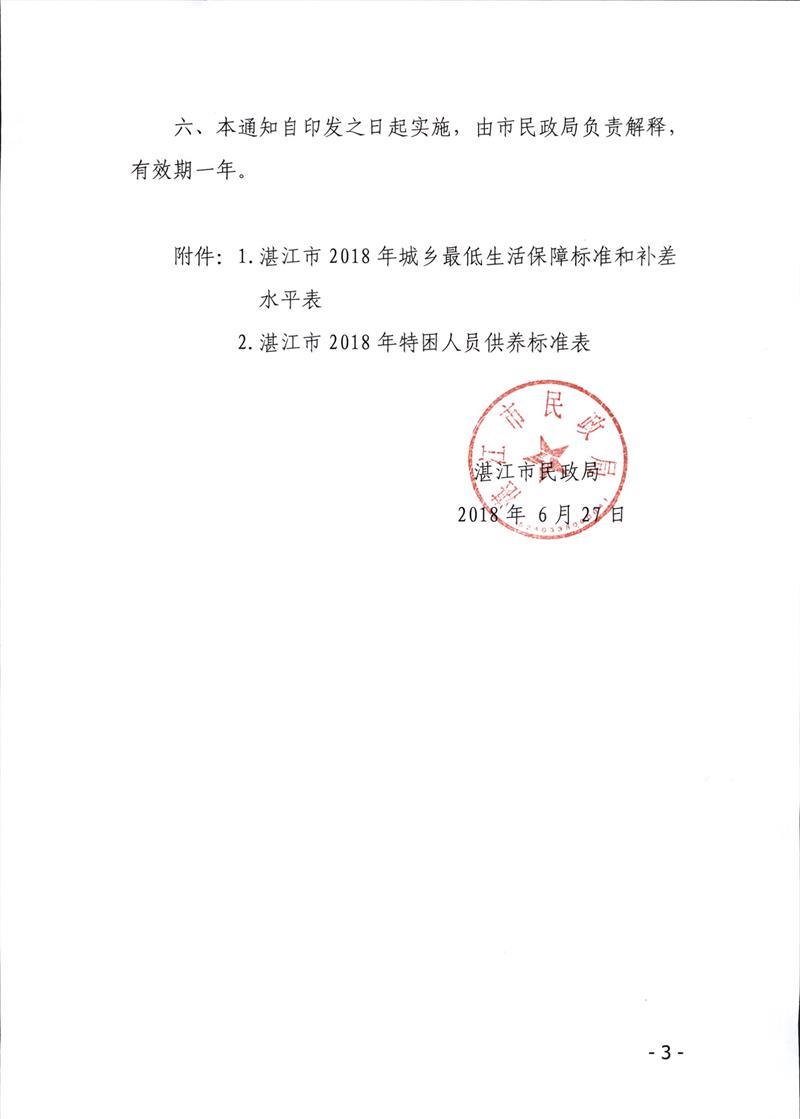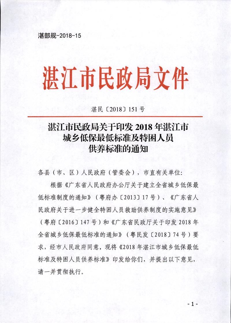 湛江市民政局關(guān)于印發(fā)2018年湛江市城鄉(xiāng)低保最低標(biāo)準(zhǔn)及特困人員供養(yǎng)標(biāo)準(zhǔn)的通知