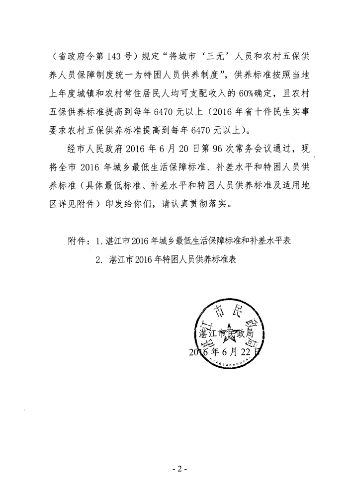 關(guān)于印發(fā)湛江市2016年城鄉(xiāng)最低生活保障標(biāo)準(zhǔn)、補(bǔ)差水平和特困人員供養(yǎng)標(biāo)準(zhǔn)的通知