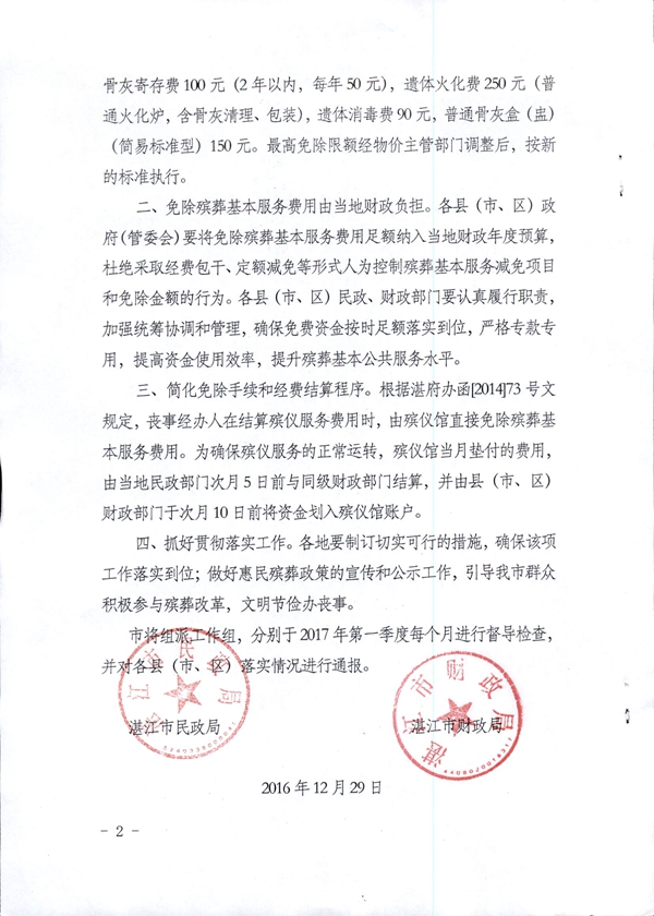 關(guān)于擴大免除殯葬基本服務(wù)費用對象的通知