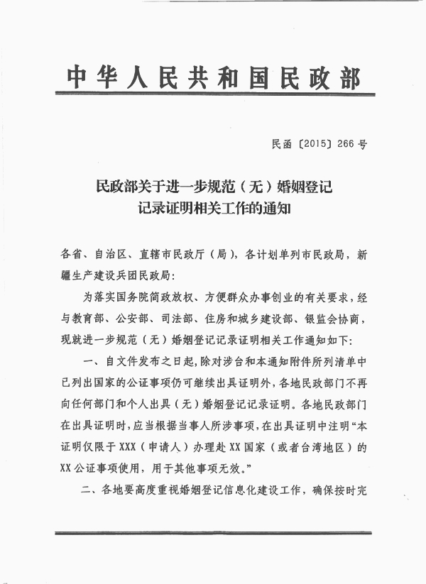 民政部關(guān)于進(jìn)一步規(guī)范(無(wú))婚姻登記記錄證明相關(guān)工作的通知