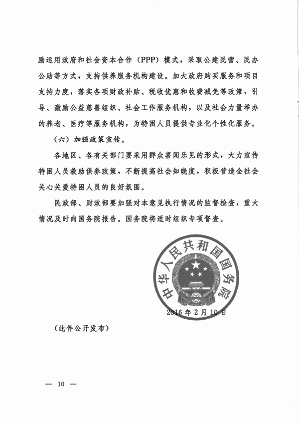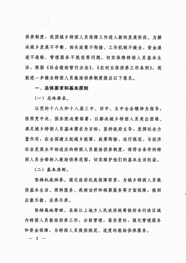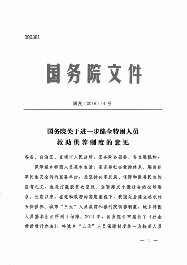 國(guó)務(wù)院關(guān)于進(jìn)一步健全特困人員救助供養(yǎng)制度的意見
