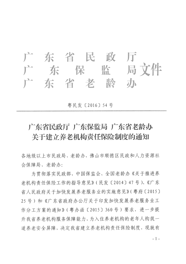 廣東省民政廳 廣東保監(jiān)局 廣東省老齡辦關(guān)于建立養(yǎng)老機(jī)構(gòu)責(zé)任保險(xiǎn)制度的通知