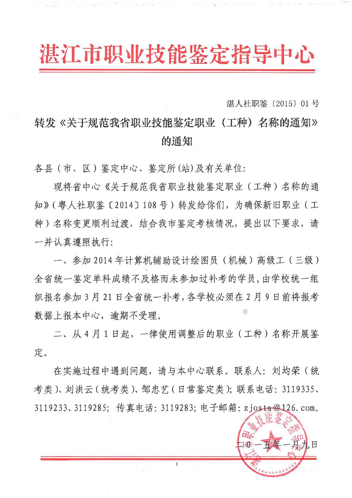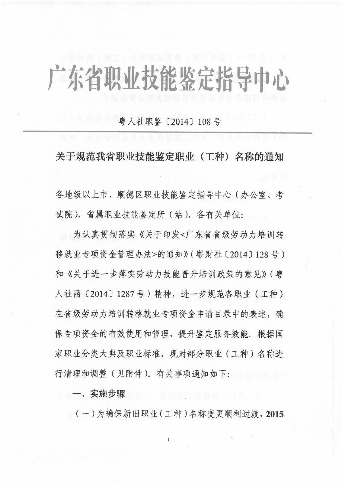 轉(zhuǎn)發(fā)《關(guān)于規(guī)范我省職業(yè)技能鑒定職業(yè)(工種)名稱的通知》的通知