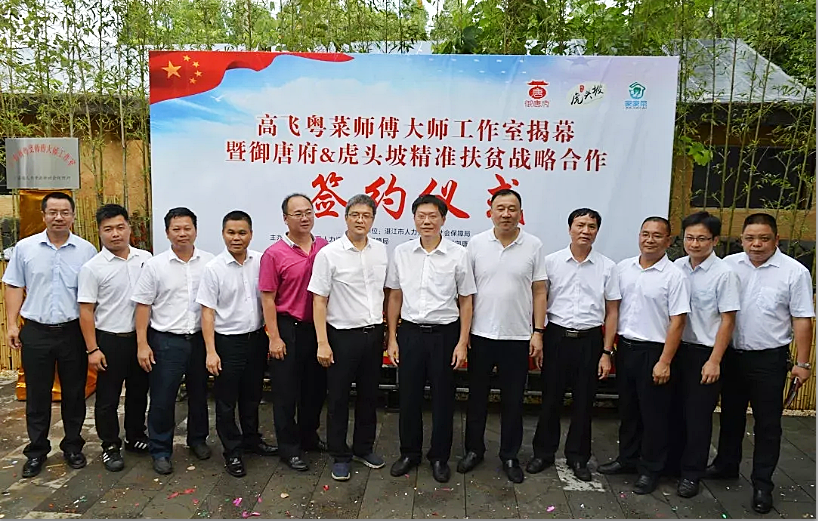 ▲湛江市高飛粵菜師傅大師工作室揭幕暨御唐府&虎頭坡精準扶貧戰(zhàn)略合作簽約儀式