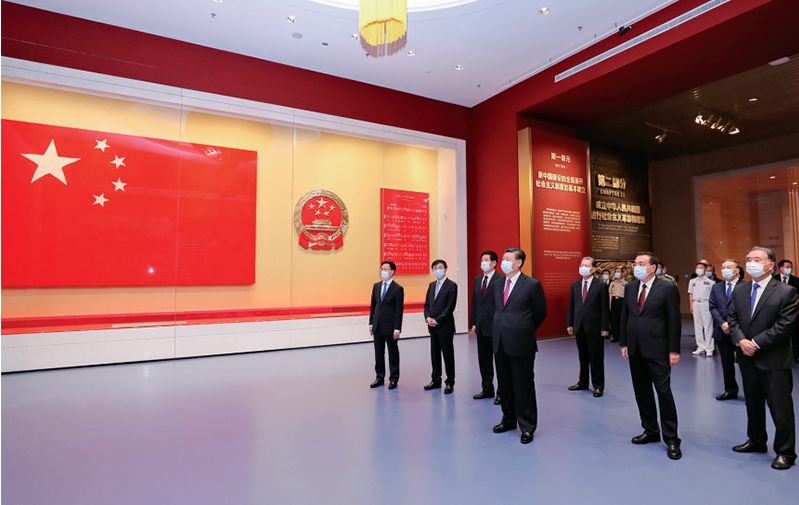 2021年6月18日,黨和國家領(lǐng)導人習近平、李克強、栗戰(zhàn)書、汪洋、王滬寧、趙樂際、韓正、王岐山等在中國共產(chǎn)黨歷史展覽館參觀“‘不忘初心、牢記使命’中國共產(chǎn)黨歷史展覽”。新華社記者 鞠鵬/攝
