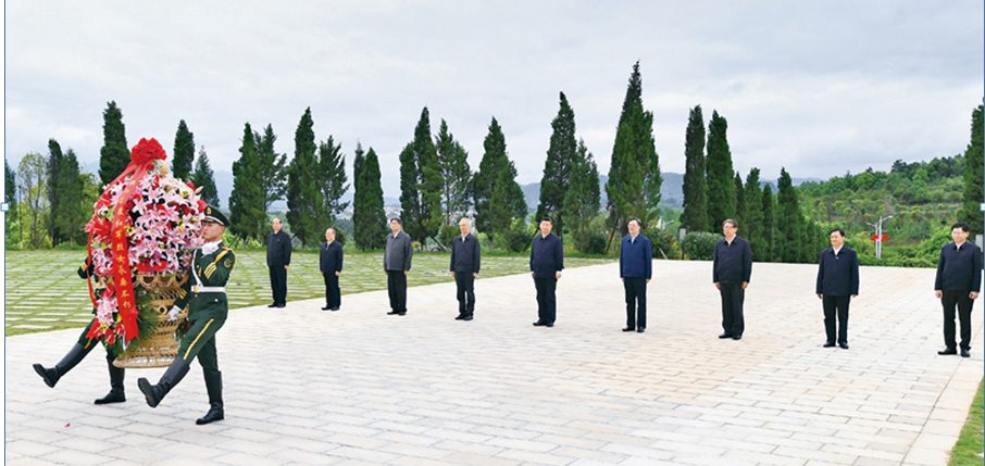 2021年4月25日至27日,中共中央總書記、國家主席、中央軍委主席習(xí)近平在廣西考察。這是25日上午,習(xí)近平在位于桂林市全州縣的紅軍長(zhǎng)征湘江戰(zhàn)役紀(jì)念園,向湘江戰(zhàn)役紅軍烈士敬獻(xiàn)花籃。新華社記者 謝環(huán)馳/攝