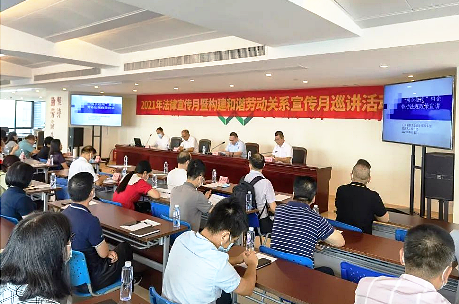 2021年9月16日,省工商聯(lián)(總商會)、省司法廳、省人力資源社會保障廳、省總工會、省企業(yè)聯(lián)合會聯(lián)合開展“和諧同行進萬企”活動之2021年廣東非公有制經(jīng)濟組織法律宣傳月暨構(gòu)建和諧勞動關系宣傳月巡講活動在湛江舉辦。