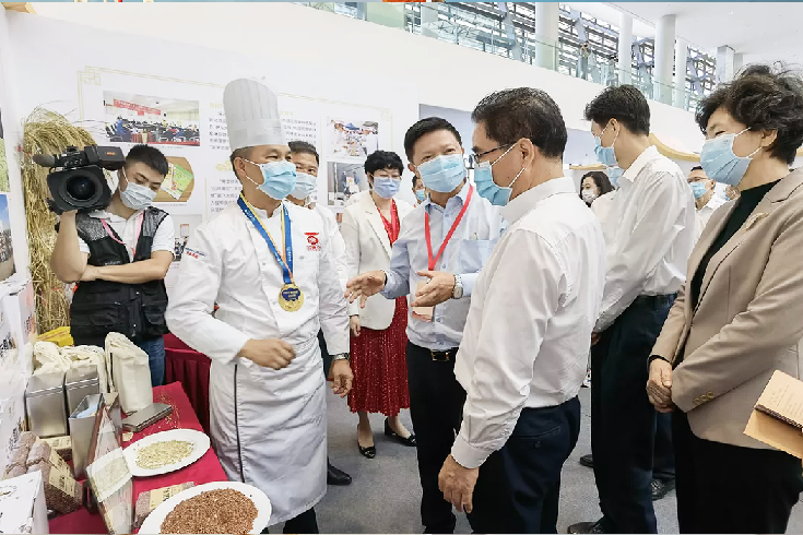 粵菜師傅展示交流活動(dòng)期間,廣東省委常委葉貞琴同志和省委統(tǒng)戰(zhàn)部副部長(zhǎng)、省僑辦主任龐國(guó)梅同志親臨湛江展示區(qū)了解我市粵菜師傅助力鄉(xiāng)村振興等相關(guān)工程情況。