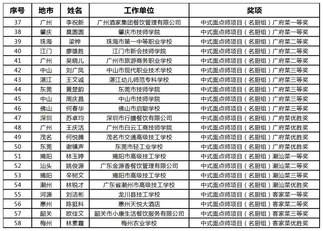 第四屆粵港澳大灣區(qū)“粵菜師傅”技能大賽獲獎(jiǎng)名單