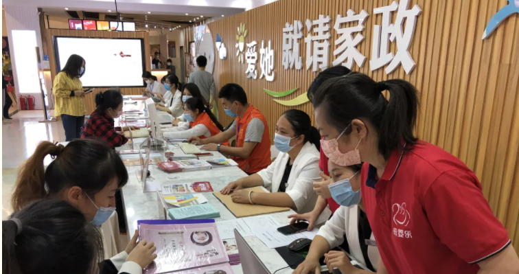 市民在湛江家政超市咨詢挑選合適的家政服務(wù)