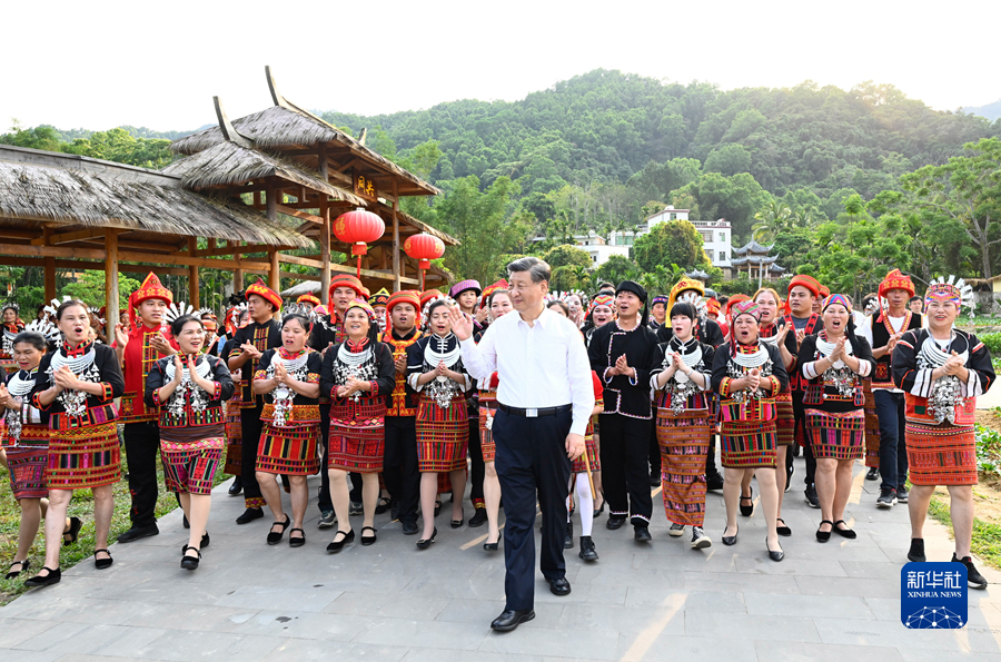 4月10日至13日,中共中央總書記、國(guó)家主席、中央軍委主席習(xí)近平在海南考察。這是11日下午,習(xí)近平在五指山市水滿鄉(xiāng)毛納村同村民們親切交流。新華社記者李學(xué)仁 攝