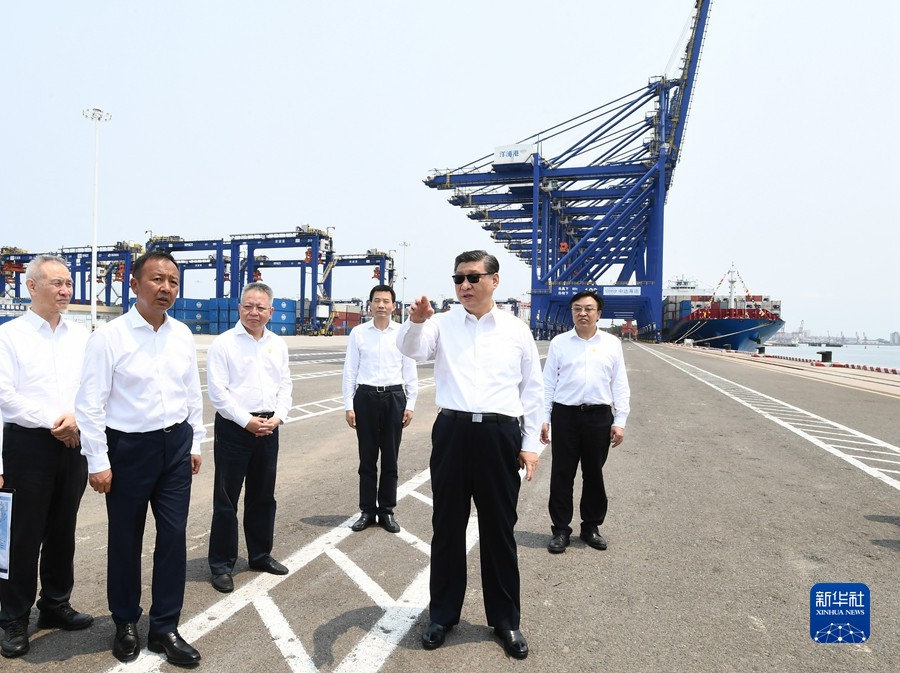 4月10日至13日,中共中央總書記、國(guó)家主席、中央軍委主席習(xí)近平在海南考察。這是12日上午,習(xí)近平在洋浦國(guó)際集裝箱碼頭小鏟灘港區(qū)考察。新華社記者謝環(huán)馳 攝