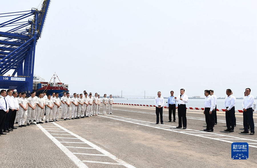 隨后,習(xí)近平來到洋浦國(guó)際集裝箱碼頭小鏟灘港區(qū),了解港口建設(shè)發(fā)展情況,同現(xiàn)場(chǎng)作業(yè)人員、掛職干部代表等親切交流。習(xí)近平強(qiáng)調(diào),振興港口、發(fā)展運(yùn)輸業(yè),要把握好定位,增強(qiáng)適配性,堅(jiān)持綠色發(fā)展、生態(tài)優(yōu)先,推動(dòng)港口發(fā)展同洋浦經(jīng)濟(jì)開發(fā)區(qū)、自由貿(mào)易港建設(shè)相得益彰、互促共進(jìn),更好服務(wù)建設(shè)西部陸海新通道、共建“一帶一路”。他指出,黨中央選派干部來自由貿(mào)易港掛職,既體現(xiàn)了黨中央對(duì)自由貿(mào)易港建設(shè)的關(guān)心和支持,也是對(duì)干部的培養(yǎng)鍛煉,要發(fā)揮掛職干部的積極作用,讓他們?cè)诨鶎右痪€增長(zhǎng)才干。