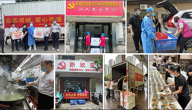 根據(jù)省、市疫情防控辦的統(tǒng)一部署,廣東省粵菜師傅培訓(xùn)基地(御唐府高飛大師工作室)、廣東省粵菜師傅大師工作室(湛江金海酒店)和湛江市粵菜師傅盧波大師工作室自5月8日起,分別向全市奮戰(zhàn)在抗疫一線的工作人員免費(fèi)提供愛(ài)心飯盒,解決基層一線防疫人員、大規(guī)模核酸檢測(cè)工作人員以及公安、城管協(xié)管員及社區(qū)工作人員等防疫人員吃飯難的問(wèn)題。