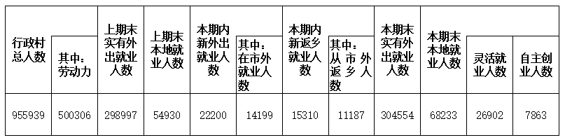備注:已就業(yè)人數(shù)=本期末實有外出就業(yè)人數(shù)+本期末本地就業(yè)人數(shù)。