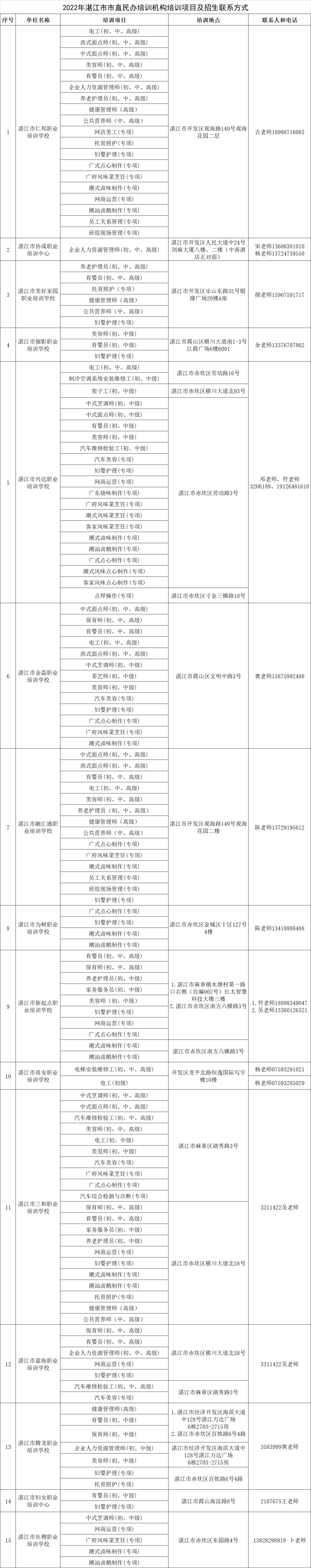 湛江市職業(yè)技能培訓機構培訓工種和聯(lián)系方式