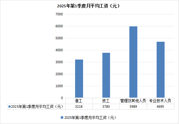 (四)薪酬待遇:2025年第1季度,普工月平均工資3218元技工月平均工資3780元,管理及其他人員月平均工資5989元,專業(yè)技術人員月平均工資4695元。