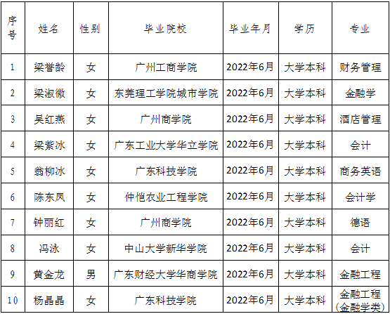 2022年廣發(fā)銀行湛江分行招聘高校畢業(yè)生的錄用人員名單