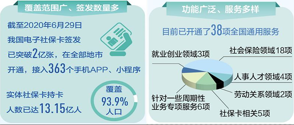 人們?nèi)ト松绮块T查詢信息、辦理業(yè)務(wù),使用醫(yī)保就診、購(gòu)藥等,都離不開社會(huì)保障卡??墒牵S身攜帶這樣一張卡片,不僅不方便,還有遺失的風(fēng)險(xiǎn)。2018年4月,人力資源和社會(huì)保障部簽發(fā)了第一張全國(guó)統(tǒng)一的電子社???,從此,社??梢浴把b”進(jìn)手機(jī)里,省去了攜帶實(shí)體卡的麻煩。電子社??▎?wèn)世兩年多來(lái),應(yīng)用情況如何?