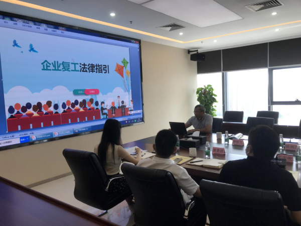活動中,柯泉科長匯報了我市民營企業(yè)“法治體檢”活動開展情況和律師服務企業(yè)復工復產工作情況。王海志主任為企業(yè)管理人員上了一堂《企業(yè)復工法律指引》法治講座,針對企業(yè)勞動用工、貨款回收、合同簽訂等問題進行了詳細地解答。雙方對企業(yè)在疫情防控和復工復產中遇到的法律困難和問題進行了深入地溝通交流。