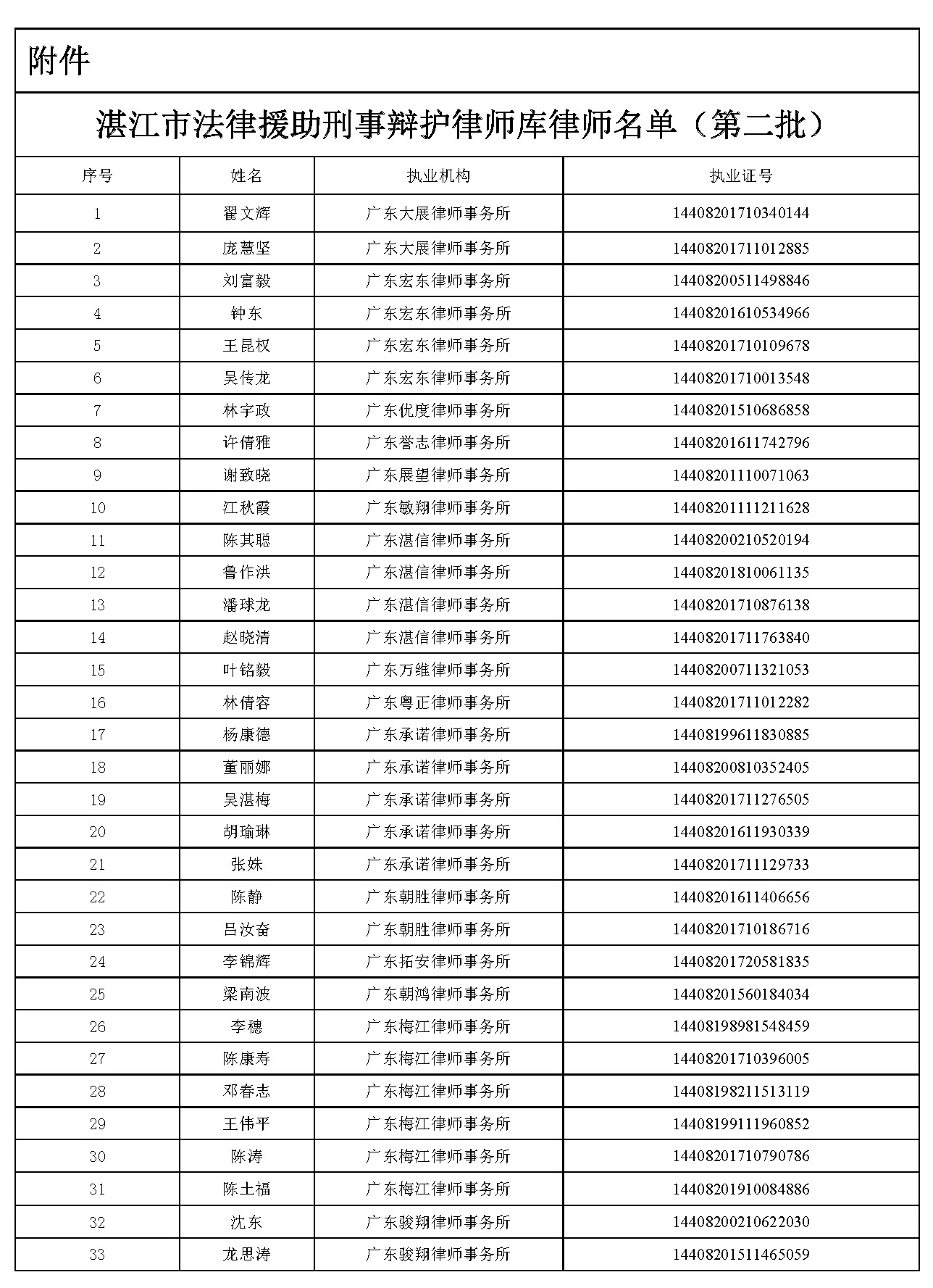 ? ? ? ? ? ?附件:湛江市法律援助刑事辯護(hù)律師庫律師名單(第二批)