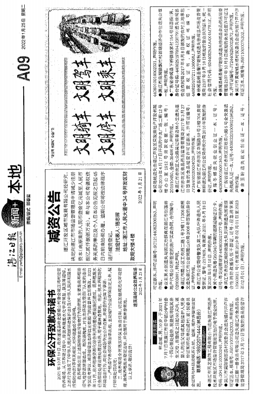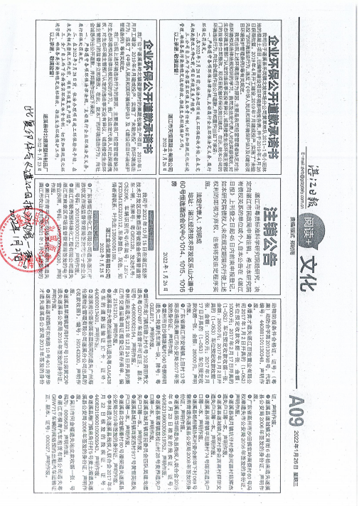 湛江市2022年部分生態(tài)環(huán)境違法主體登報公開道歉