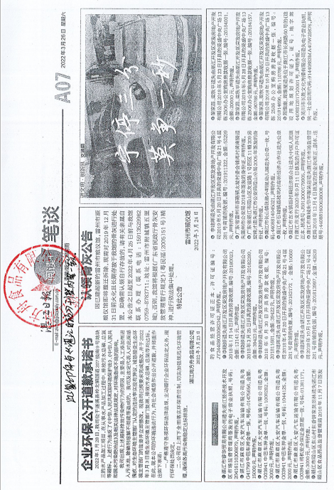 吳川市龍達塑料復合彩印廠于2022年10月14日在湛江日報A11版登報,公開道歉并做出守法承諾。