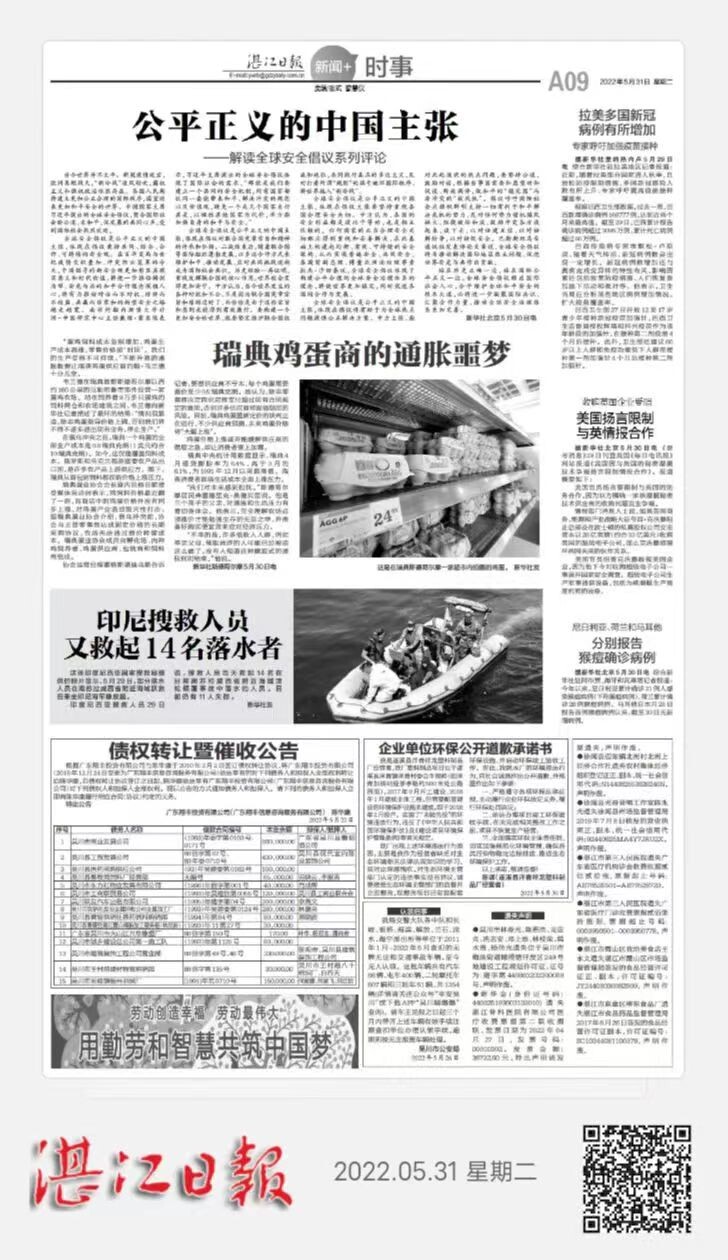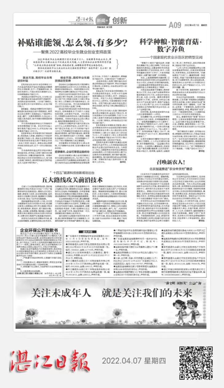 湛江市青方環(huán)??萍加邢薰居?/span>2022年5月12日在湛江日報公開道歉并作出守法承諾。