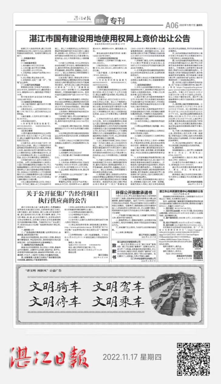 湛江開發(fā)區(qū)仁瑞醫(yī)院于2022年11月17日在湛江日報A11版登報,公開道歉并做出守法承諾。