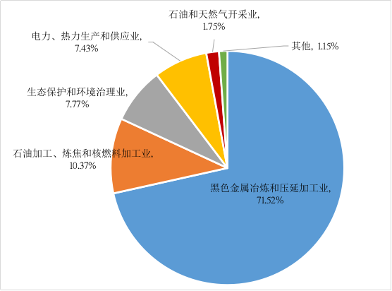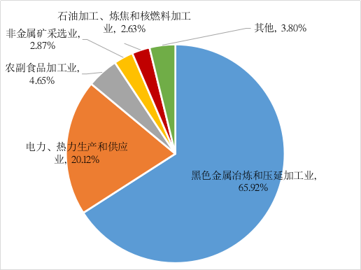 2023年,一般工業(yè)固體廢物產(chǎn)生量排名前5的行業(yè)依次為黑色金屬冶煉和壓延加工業(yè)、電力、熱力生產(chǎn)和供應(yīng)業(yè)、農(nóng)副食品加工業(yè)、非金屬礦采選業(yè)、石油加工、煉焦和核燃料加工業(yè),分別占全市一般工業(yè)固體廢物產(chǎn)生量的65.92%、20.12%、4.65%、2.87%、2.86%,詳細(xì)情況見圖1。
