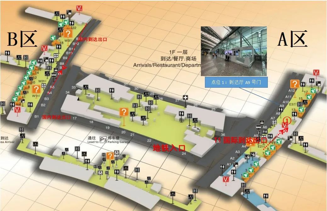 T1航站樓設(shè)置有1個辦證點:到達廳A9號門旁