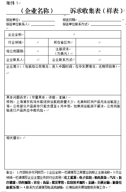 為認(rèn)真貫徹落實(shí)黨中央、國務(wù)院關(guān)于穩(wěn)外資工作決策部署以及省相關(guān)工作要求,全面準(zhǔn)確了解外資企業(yè)訴求,及時(shí)推動(dòng)解決我市外資企業(yè)遇到的問題,請(qǐng)有訴求的企業(yè)請(qǐng)?zhí)顚憽锻赓Y企業(yè)訴求收集表》(見附件),并發(fā)送到指定郵箱,郵箱:ccpitzj@163.com。也可撥打熱線電話進(jìn)行咨詢,電話:07593620112、07593620166。