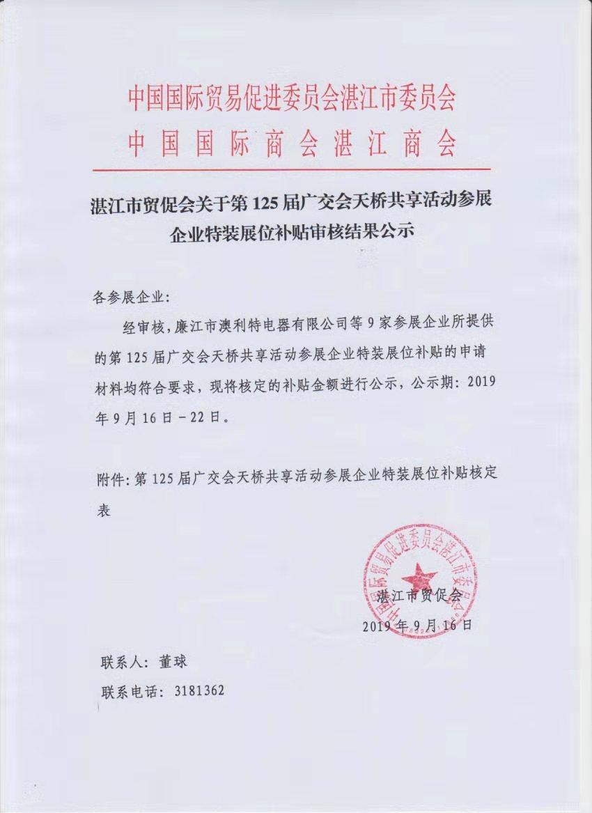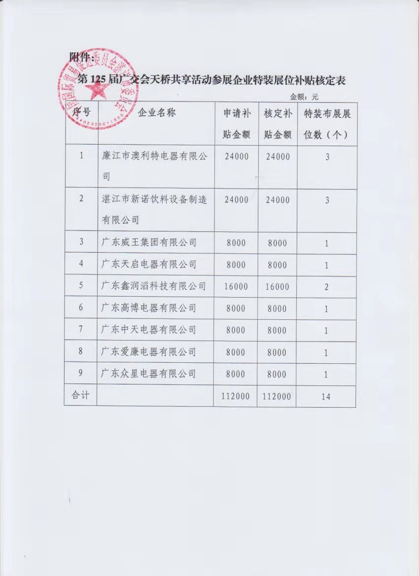 第125屆廣交會天橋共享活動參展企業(yè)特裝展位補貼審核結(jié)果公示