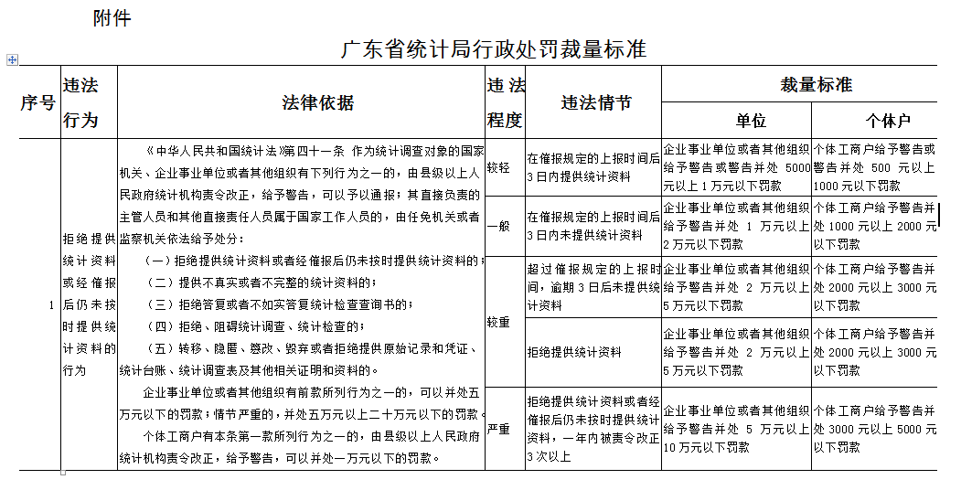 附件:廣東省統(tǒng)計局行政處罰裁量標準