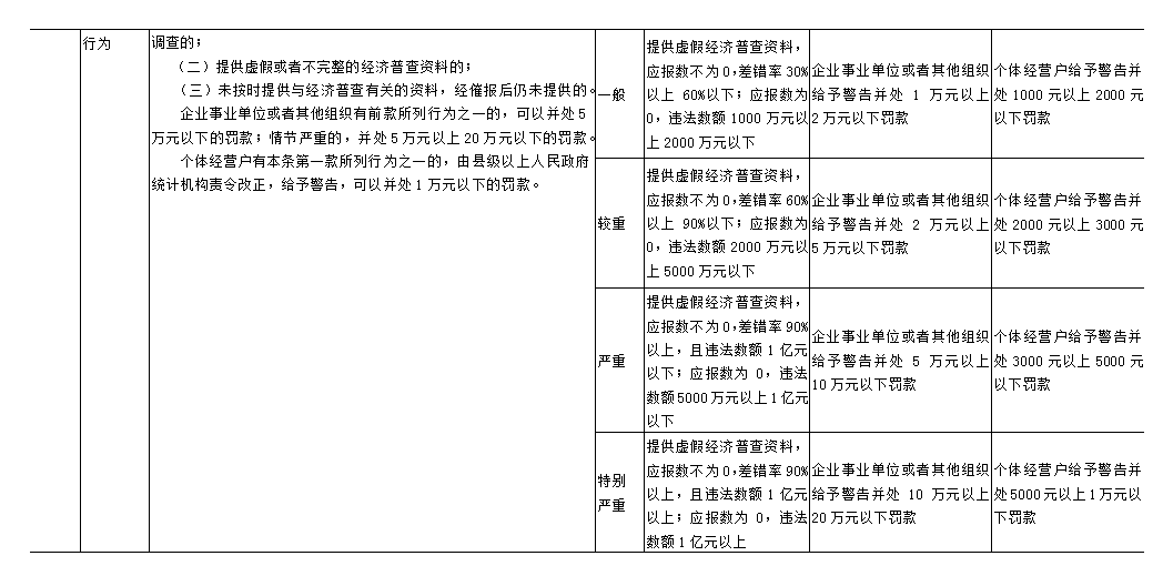 (一)結(jié)合統(tǒng)計違法行為的事實、性質(zhì)、情節(jié)和社會危害程度以及主客觀因素等,界定違法行為的違法程度,根據(jù)不同處罰對象、不同違法行為,初步確定適用的統(tǒng)計行政處罰種類和幅度;