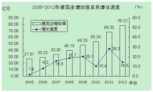 全年建筑業(yè)增加值78.22億元,比上年增長14.5%;全市資質(zhì)等級(jí)以上建筑企業(yè)116家,實(shí)現(xiàn)總產(chǎn)值247.05億元,比上年增長20.9%;實(shí)現(xiàn)利潤總額5.15億元,增長20.0%。房屋建筑施工面積2916.