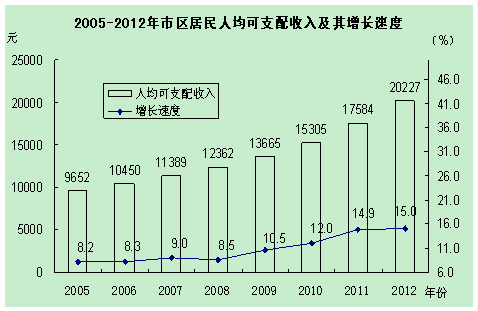 ? ?全年市區(qū)居民人均可支配收入20227.32元,增長15.0%。市區(qū)居民恩格爾系數(shù)為41.8%,比上年下降0.2個(gè)百分點(diǎn)。市區(qū)居民人均住房建筑面積