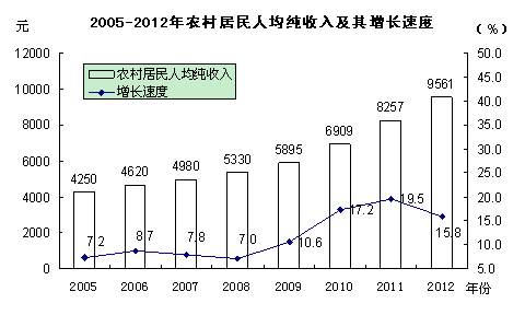 全年農(nóng)村居民人均純收入9561元,增長15.8%。農(nóng)村居民恩格爾系數(shù)為51.2%,比上年下降了1.2個(gè)百分點(diǎn)。