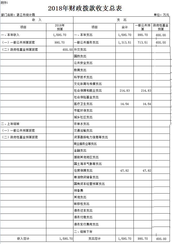 一、2018年財(cái)政撥款收支總表