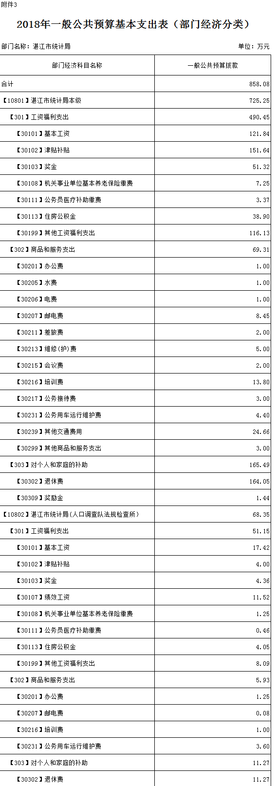 1.本部門預(yù)算為匯總預(yù)算,包括: 湛江市統(tǒng)計(jì)局本