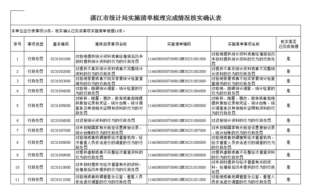 湛江市統(tǒng)計(jì)局實(shí)施清單梳理完成情況核實(shí)確認(rèn)表