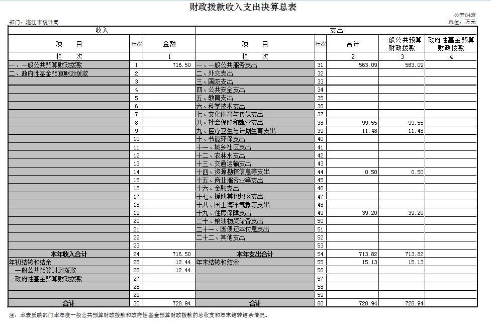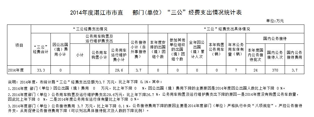 湛江市統(tǒng)計(jì)局2014年部門決算情況說明