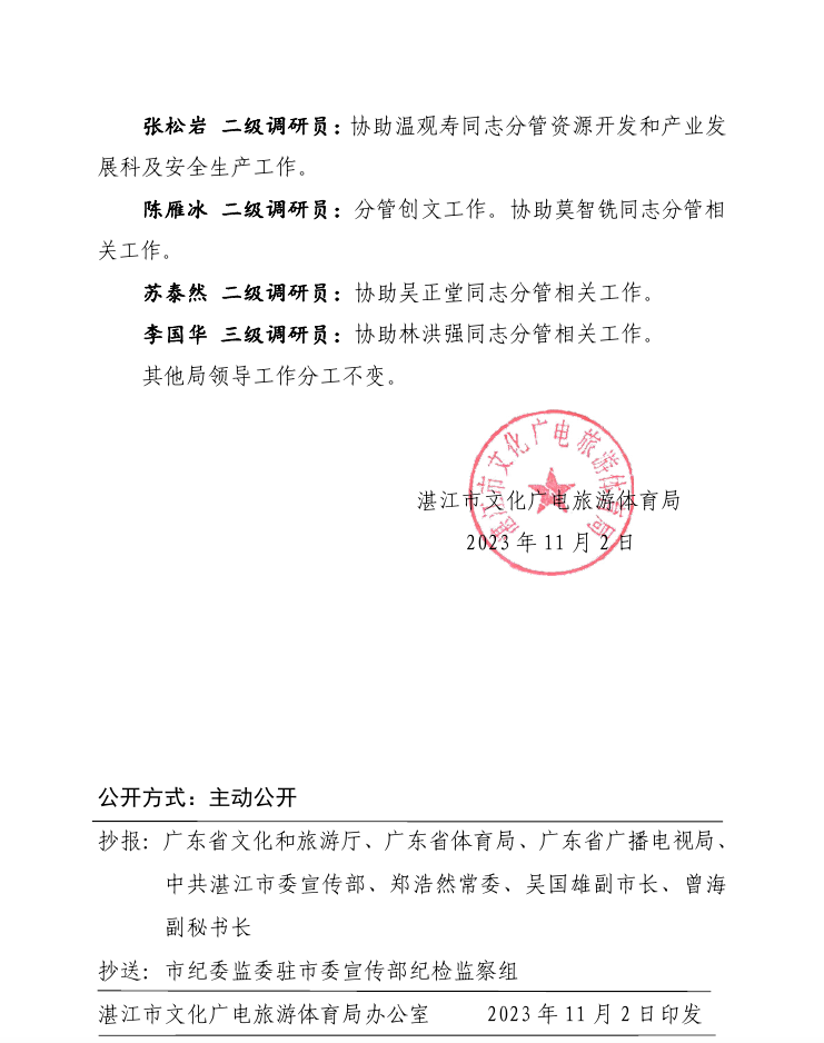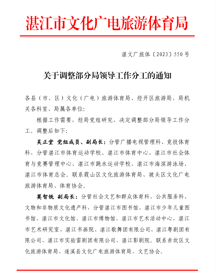 關(guān)于調(diào)整部分局領(lǐng)導(dǎo)工作分工的通知(11月2日)