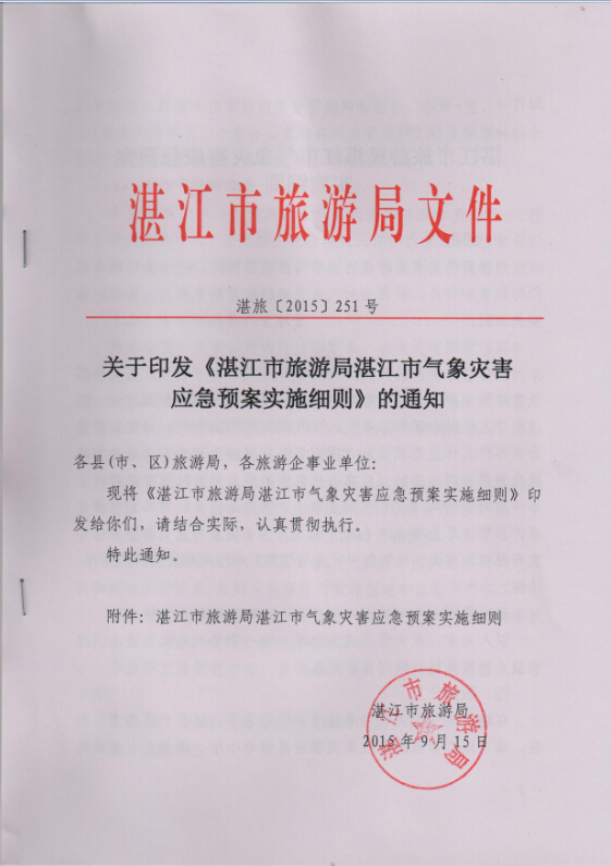 關(guān)于印發(fā)《湛江市旅游局湛江市氣象災(zāi)害應(yīng)急預(yù)案實施細則》的通知