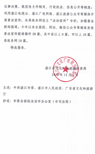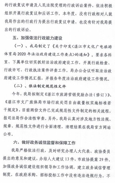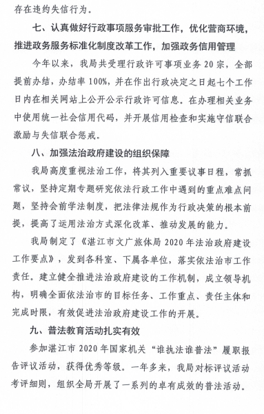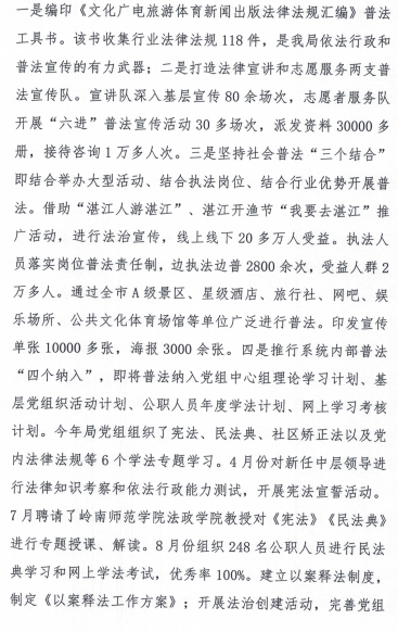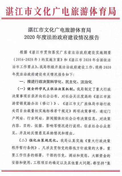 湛江市文化廣電旅游體育局2020年度法治政府建設情況報告