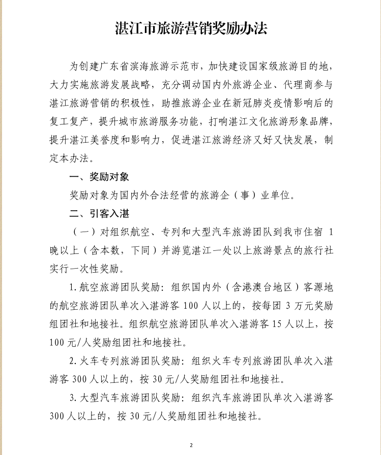 湛江市人民政府辦公室關于印發(fā)湛江市旅游營銷獎勵辦法的通知.pdf