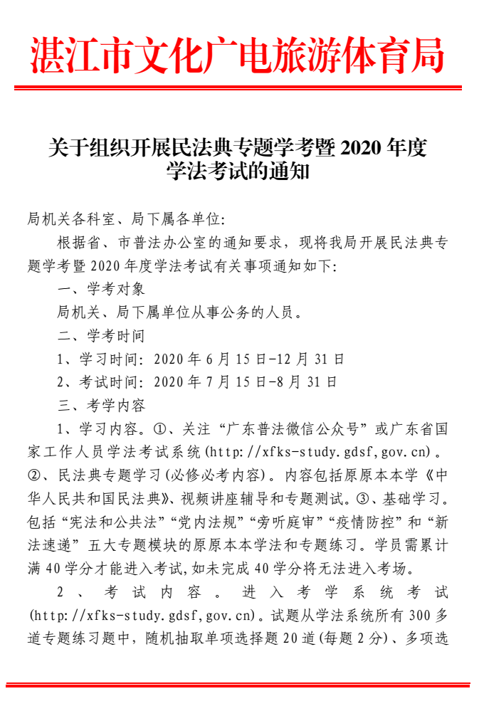 關(guān)于組織開展民法典專題學(xué)考暨 2020 年度學(xué)法考試的通知