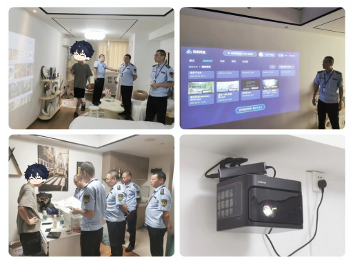 圖為執(zhí)法人員檢查私人影院,在現(xiàn)場調(diào)查相關(guān)情況并強調(diào)落實安全生產(chǎn)主體責任