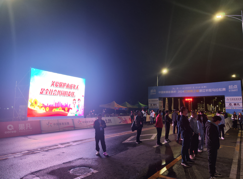 賽事起點現(xiàn)場LED顯示屏宣傳未成年人保護工作